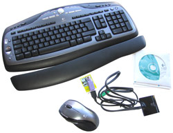 Beim neuen Logitech Cordless Desktop MX 3000 Laser Set im Logitech-typischen Zero-Degree Tilt Design handelt es sich um eine multimediale Kombination aus einer drahtlosen Maus und einer drahtlosen Tastatur für den heimischen PC. Die MX 3000 Tastatur verfügt insgesamt über 105 Tasten im herkömmlichen Tastenlayout (Standard, daher keine nähere Erläuterung) und einer Fülle zusätzlicher Tasten und Funktionen daher. Zu den Zusatztasten zählen wir beipsielsweise eine so genannte "F Mode"-Taste und je eine Taste für den Taschenrechner und das Ausschalten des PCs (wahlweise auch mit Standby oder ähnlichen Energiesparfunktionen belegbar). Mithilfe der Taste F Mode lassen sich die alternativen Belegungen der F-Tasten benutzen, welche unter anderem verschiedene Office-Programme direkt starten lassen, den Batteriestand über eine LED signalisieren oder eine Seite ausdrucken können. Auf den Tasten F9 bis F12 lassen sich persönliche Vorlieben hinterlegen - mehr dazu im unten folgenden Software-Abschnitt. Der Status der F Mode Taste lässt sich nicht nur am Funkempfänger, sondern auch durch das praktische OSD am Monitor ablesen.