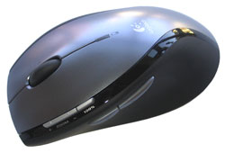 Die mitgelieferte Logitech Cordless MX 600 Maus ist rein von ihrer Ergonomie her nur für Rechtshänder geeignet und verwehrt dem interessierten Linkshänder somit die Möglichkeit mit dem Cordless Desktop MX 3000 Laser Set glücklich zu werden. Die Maus verfügt, wie die entsprechende Tastatur, über eine Fülle an Zusatzfunktionen. Neben den herkömmlichen Maustasten Links und Rechts hat Logitech wiederum eine Zoom-Funktion (Wippe für Zoom +/- und 100%-Taste) integriert. Neben den links befindlichen Tasten für Vor und Zurück finden wir auf der Oberseite eine Statusanzeige für den Batteriezustand und ein 4-Wege-Tastenrad. Wie bereits weiter oben erwähnt, setzt die MX 600 auf Lasertechnologie und ermöglicht somit eine sehr präzise Steuerung. Lobenswert: Durch längeres Betätigen des Connect-Buttons auf der Unterseite lässt sich die Maus komplett ausschalten und so gerade während des Transports die Batterielebensdauer deutlich steigern. Alle weiteren Einstellungen sind mithilfe der SetPoint-Software vorzunehmen.