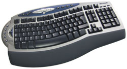 Prinzipiell ist das Layout der Tastatur bereits von früheren Microsoft-Tastaturen bekannt und kommt mit dem geschwungenen Haupttastenfeld daher. Dadurch soll eine höhere Ergonomie erreicht werden, da die Hände im optimalen Fall nicht parallel zueinander auf die Tastatur gelegt werden müssen, um alle Tasten perfekt erreichen zu können. Insgesamt haben die Ingenieure von Microsoft 103 Tasten in das Standardlayout integriert und runden das Gesamtbild mit weiteren Features und Shortcuts ab. Ebenfalls ein Microsoft-typisches Feature: Die F-Umschalttaste. Mithilfe dieser Taste lässt sich die sekundäre Belegung der F-Tasten aktivieren, welche in der Praxis folgende Kürzel beinhalten (v.l.n.r.): Hilfe, Rückgängig, Wiederherstellen, Neu, Öffnen, Schließen, Antwort, Weiterleiten, Senden, Rechtschreibprüfung, Speichern, Drucken. Alle diese Tasten lassen sich durch die mitgelieferte IntelliType Pro-Software präzise konfigurieren und nach Belieben verwalten. So ist es beispielsweise mit jeder dieser genannten Tasten möglich, ein beliebiges Programm oder eine Datei direkt zu öffnen - ein umfangreicher Funktionskatalog, sowie die Deaktivierung jeder beliebigen Taste steht ebenfalls bereit.
