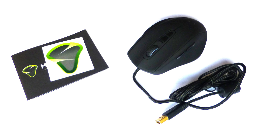 Die heute getestete Mionix Naos 7000 ist der neueste Sprössling aus dem Hause Mionix. Sie kommt in einem edlen, schwarzen Karton zum Endanwender. Beim Aufschieben sieht man die Maus hinter einer transparenten Kunststoffschicht. Ganz klar liegt hier das Hauptaugenmerk des Herstellers auf der Maus. Neben der Maus mit auffälliger Form fällt der Lieferumfang eher spärlich aus – er besteht nur aus einem Mionix-Aufkleber und einer Kurzanleitung. Die für die Konfiguration benötigte Software muss aus dem Internet heruntergeladen werden, eine Software-CD ist nicht vorhanden.