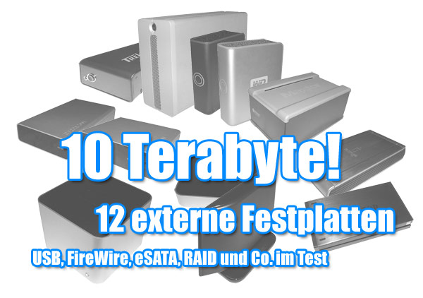 Auf den folgenden Seiten werden wir die zwölf Probanden mit insgesamt fast zehn Terabyte Fassungsvermögen erst einmal vollständig beleuchten, bevor wir zu den eigentlichen Tests kommen. Die Untersuchungen beschränken sich hierbei nicht nur auf die reine Geschwindigkeitsmessung, sondern beinhalten auch die Lautstärke in Dezibel, das Gewicht und die Leistungsaufnahme der einzelnen Geräte in unterschiedlichen Situationen. Mit dabei im Test waren die Unternehmen Freecom, Iomega, LaCie, Maxtor, One Technologies, Seagate, TrekStor und Western Digital. Wir wünschen Ihnen wie immer viel Spaß beim Lesen des Artikels!