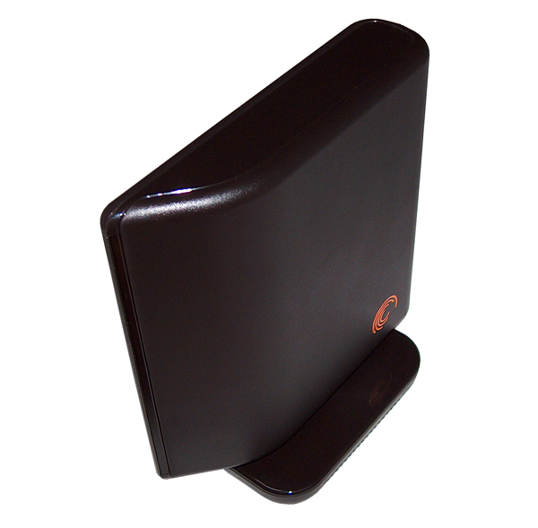 Angeschlossen an den Computer wird die Seagate FreeAgent Desktop ausschließlich über USB2.0, der sich auf der Rückseite in den Fuß des Gehäuses integriert befindet und direkt neben dem Netzteilanschluss positioniert wurde; einen Ein-/Ausschalter sucht man hier jedoch leider vergebens. Die Länge des Netzteil ist mit nur 1,9 m die drittkürzeste des Testfeldes, nur Iomega und die TrekStor maxi m.u bieten noch kürzere Anschlusskabel. Das USB-Datenkabel (A-MiniB) hingegen ist mit 1,5 m das zweitlängste Kabel aller Hersteller im Test. Nur Maxtor und Western Digital haben jeweils nochmals je 30 cm dazugepackt und müssen sich in dieser Disziplin den ersten Platz teilen.