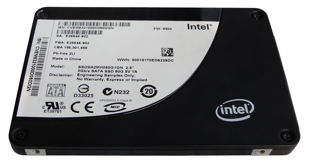 Wie die Vorgängerfamilie, ist auch die X25-M G2 Postville mit 80 oder 160 GB erhältlich. Die Laufwerke wechseln aktuell ab 180 (80 GB, SSDSA2MH080G2C1) bzw. 365 Euro (160 GB, SSDSA2MH160G2C1) den Besitzer. Der Preis pro Gigabyte liegt damit bei 2,25 respektive 2,28 Euro. Das 80 GB-Modell ist leistungsmäßig (geringere Schreibgeschwindigkeit) allerdings nicht auf dem gleichen Niveau wie die größere Ausführung. Mehr zum 160 GB-Modell lesen Sie auf den folgenden Seiten.