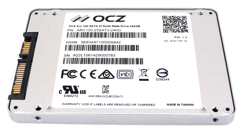 In ingesamt drei unterschiedlichen Kapazitäten ist die neue ARC 100 von OCZ erhältlch. Die verschiedenen Modelle verfügen über wahlweise 120, 240 oder sogar satte 480 GB Speicherkapazität. Die beiden erstgenannten wechseln ab 70 bzw. 115 Euro den Besitzer (Quelle: Geizhals.de, Stand: 08/2014), für die 480 GB Variante werden vermutlich rund 220 Euro fällig – die löckenlose Verfügbarkeit sollte innerhalb der nächsten Tage gewährleistet sein. Daraus ergeben sich Preise pro Gigabyte von 58 bzw. 48 Euro-Cent für die Modelle mit 120 bzw. 240 GB – das Spitzenmodell liegt bei rund 46 Cent. In der unten stehenden Tabelle sind alle wesentlichen technischen Eckdaten der Familie nachzulesen. Weitere Informationen zu unserem Testkandidaten erhalten Sie auf den nun folgenden Seiten des Artikels.