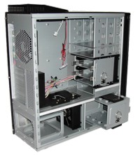 Um mit dem Einbau der Komponenten im Antec beginnen zu können, muss zunächst einiges demontiert werden. So muss neben der Seitenwand der VGA-Fan-Duct ebenso entfernt werden wie die Festplattenkäfige oder der Käfig für das Netzteil. Das ist aber schnell erledigt und stellt kein großes Hindernis dar.