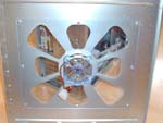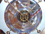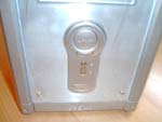 Das Frontpanel kann durch eine kleine Klappe am Boden des Gehäuses versteckt werden, damit die Buchsen nicht einstauben oder einfach nur wegen der Optik, um die Front besser zu gestalten. Der Powertaster ist ein großer runder Knopf der von einem chromfarbenen Ring umrandet ist. Die Status LED ist grün und die Festplatten LED rot, was eigentlich schade ist, denn zu einem richtigen Modding-Case gehören eigentlich schon blaue oder weiße Status bzw. Festplatten LEDs. Blau oder weiß hätte auch besser zur Gehäusefarbe gepasst...