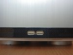 Bei der bereits integrierten Dämmung des PC-6070 handelt es sich um eine relativ dünne, spezielle Schaumstoffmatte welche an der Top- und Frontpanel, sowie den Seitenpanelen angebracht (geklebt) ist. Diese ist bedingt durch den dünnen Aufbau leider nur relativ wenig effektiv. Zur weiteren Dämmung des Gehäuses trägt die massive Aluminium-Fronttür des Gehäuses bei. Sie ist ausserdem noch mit einer speziellen Schaumstoff-Dichtung ausgestattet. Leider ist die Dichtung nicht stark genug verklebt worden und kann sich bei starker Beanspruchung ziemlich schnell vom Aluminium lösen. Das PC-6070 Gehäuse besitzt ein USB-Front-Panel für zwei USB-Stecker welches sehr elegant in das Frontdesign des Gehäuses eingearbeitet ist...
