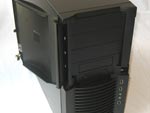 Bereits äußerlich lässt sich leicht feststellen, dass das Gehäuse unter anderem in Sachen Räumlichkeit und Erweiterungsmöglichkeiten einiges zu bieten hat. So bietet das Titan 550 insgesamt vier Schächte für externe Laufwerke, wobei folgende Kombinationen möglich sind: 4x 5,25 Zoll oder 3x 5,25 Zoll plus 1x 3,5 Zoll - der Wechsel zwischen den beiden Formaten wird durch einen passenden Adapter, welcher dem Lieferumfang bzw. dem Gehäuse beiliegt, gewährleistet. Aber auch für interne Komponenten stehen ausreichende Kapazitäten zur Verfügung, was sich konkret in sechs 3,5 Zoll Halterungen niederschlägt. Die Rückseite des Gehäuses hält sieben Slots für Erweiterungskarten á la PCI, PCI Express, AGP oder ähnlichem bereit - Befestigung erfolgt durch Schrauben und nicht durch "einklicken". Ein gängiges ATX-I/O-Shield, welches bei einer Reihe von Motherboards passen müsste, wurde ebenfalls bereits vorinstalliert.