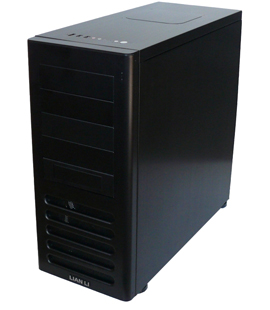 Beim Lian Li PC-7FNWX, das nahezu komplett aus schwarz eloxiertem Aluminium besteht, handelt es sich um ein ATX-Gehäuse, bei dem das Netzteil unter dem Mainboard montiert wird. Eine besonderheit ist, dass der Einbau komplett ohne Werkzeug vorgenommen werden kann. Die Abmessungen entsprechen mit 210 x 470 x 490 mm (B x H x T) einem üblichen Midi-Gehäuse. Das Gehäuse ist, abgesehen von der Front, ident mit dem PC-60FNWX.