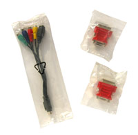 Bei den genannten Datenträgern handelt es sich zum einen um die Treiber-CD, welche einen aktuellen Nvidia ForceWare Treiber zum Betrieb der Grafikkarte beherbergt. Des Weiteren finden wir noch CyberLinks bekanntes PowerDVD 5 und Muvee autoProducer 4 - eine Video Bearbeitungs Software - in der Verpackung vor. Bei dem erwähnten Handbuch handelt es sich besser gesagt um eine mehrsprachige Kurzanleitung, welche unter anderem die wichtigsten Schritte in deutscher Sprache enthält und dem Laien den Einbau erleichtert. Neben einem Kabel für die Stromversorgung und zwei DVI/VGA-Adaptern legt Gainward außerdem eine praktische Kabelpeitsche bei. Mit dieser Peitsche können alle TV-Out Features genutzt werden - S-Video und Chinch. Mit dabei ist normalerweise ein Gutschein, welcher unserer Karte jedoch nicht beilag: Der Spieler kann sich damit unter www.gainwardgamingzone.com ein Spiel aussuchen und unter Angabe der Seriennummer des Scheines ein Spiel kostenlos zusenden lassen. Folgend der komplette Lieferumfang der BLISS GeForce 7900 GT Karte aus dem Hause Gainward im Überblick.