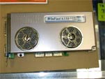 WinFast TwinTurbo-II, so heißt das bekannte Kühlsystem von Leadtek, welches bereits auf dem ersten Nvidia Flaggschiff, dem NV30, zum Einsatz kam (Bildquelle: Akiba Japan). Rein äußerlich hat man nichts am Aussehn der Kühlkonstruktion verändert bzw. verbessert. Wie es im Inneren aussieht, lässt sich nicht genau sagen, jedoch kann man davon ausgehen, dass sich auch hier nichts verändert hat, sonst würde man den Kühler wohl TwinTurbo-III nennen. Bei TwinTurbo handelt es sich um eine Entwicklung, die durch so genannte Tunnel einen optimalen Luftstrom und dadurch eine perfekte Kühlung ermöglicht. Zwar ist kein genauer Wert der Lautstärke bekannt, doch gehen wir hier von ebenfalls etwa 40 dB aus, da wir TwinTurbo-II bereits auf einer FX 5800 erleben durften und in etwa einschätzen können wie laut sie im Vergleich zu anderen Karten ist...