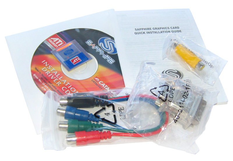 Die Sapphire Radeon HD 2600 Pro ist grundlegend in zwei verschiedenen Varianten erhältlich. Die beiden Versionen unterscheiden sich im Speichertyp (DDR2 oder GDDR3) und damit auch in der Performance und dem Anschaffungspreis. Der Lieferumfang ist jedoch identisch und jeweils als Lite-Retail erhältlich: Quick-Installation Guide in mehreren Sprachen (auch Deutsch), Installations-CD, S-Video/Chinch-Adapter, RGB-Komponentenkabel, DVI/VGA-Adapter und Aufkleber. Der Preis für die DDR2-Version liegt momentan bei etwa 75 Euro (Quelle: Geizhals.at, Stand: 09/2007). Kommen wir zur Hardware und Ausstattung.