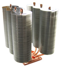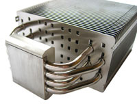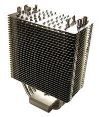 Was darf bei einem Kühlerroundup nicht fehlen? Richtig, Hersteller Thermaltake! Und schon beim Öffnen der Verpackung setzt sich das Unternehmen wieder richtig ins Szene und besticht durch ein reichhaltiges Zubehör, zumindest was den Bereich der Plattform-Kompatibilität betrifft. Der SonicTower ist nicht nur in der Lage Prozessoren der 7. und 8. Generation von AMD (Sockel 462(A)/754/939/940) zu kühlen, sondern auch Intels Sockel 478 und LGA775. Für insgesamt etwa 25 Euro Anschaffungspreis bekommt man zudem noch eine ausführliche Bedienungs- und Installationsanleitung und ein wenig Wärmeleitpaste. Zwei spezielle Halterungen ermöglichen des Weiteren den Einsatz eines optionalen 120 mm Lüfters für den aktiven Betrieb des SonicTower 4in1. Offizielle Informationen über die maximalen Frequenzen und Prozessormodelle die mit dem Thermaltake-Kühler betrieben werden können, liegen leider nicht vor - sämtliche Sockel A CPUs bedenkenlos tauglich. Die Montage des Passiv-CPU-Kühlers ist im Falle des AMD64-basierten Systems denkbar einfach und relativ fix erledigt: Eine in den Körper eingeschobene Klammer wird mittels zweier Schrauben an der bestehenden Backplate des Mainboards festgeschraubt und sichert den festen Halt. Die Verarbeitung des Boliden ist Tt-typisch gut und gibt keinen Grund zur Kritik.