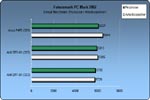 355 MHz, welches wiederum durch den höheren Speichertakt einen Vorsprung zum DDR333 Betrieb zeigt. Im Wesentlichen
