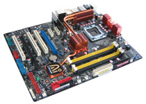 Mit zum oberen Mainboardteil gehört auch das Back-Panel, das eigentlich alle auf dem Board verfügbaren Anschlüsse nach außen schleift. So finden wir folgende Schnittstellen: PS/2 für Tastatur (nicht für Maus!), Digital-Audio via Chinch und optischem Leiter, FireWire 400 und eSATA, 2x RJ45 Gigabit-Ethernet, sowie 6x USB 2.0. Für die übrigen FireWire- und USB-Ports liegt ein Slotbracket bei bzw. können an das Front-Panel angeschlossen werden. Den auf dem Board verfügbaren seriellen COM-Port hat man nicht am Back-Panel umgesetzt - ein Slotbracket fehlt ebenso.