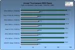 Bei Unreal Tournament 2003 (Angaben in Bildern pro Sekunde) ergab sich ein ähnlicher Verlauf wie bei 3D Mark