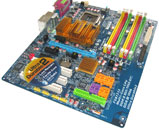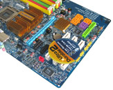 Mit zum oberen Mainboardteil gehört auch das Back-Panel, das eigentlich alle auf dem Board verfügbaren Anschlüsse nach außen schleift. So finden wir folgende Schnittstellen: PS2 für Tastatur und Maus, serieller COM-Port, paralleler LPT-Port, Digital-Audio via Chinch und optischem Leiter, RJ45 Gigabit-Ethernet, sowie 4x USB 2.0. eSATA wird durch das mitgelieferte Slotbracket umgesetzt und konnte vor allem durch den externen Stromanschluss keinen Platz im Back-Panel finden.