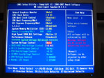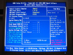 So lässt sich die Frequenz des Front Side Bus von 100 bis 700 MHz in 1 MHz-Schritten präzise regulieren. Des Weiteren hat der User die Möglichkeit den PCI Express Takt von 90 bis 150 MHz zu steuern. Für den DDR2/DDR3-Speicher hält man verschiedene FSB:DRAM-Teiler (maximal DDR2/3-1066 bei 266 MHz FSB) bereit und auch die Timings können im Feintuning optimiert werden. Lediglich die Command Rate wird automatisch durch das Speicher-SPD übernommen und kann nicht separat gesteuert werden, weder bei DDR2, noch bei DDR3. Um an die Settings für die Timings zu gelangen, muss man im BIOS-Hauptmenü die Tastenkombination Strg+F1 betätigen, um die "versteckten" Möglichkeiten für den Power-User freizuschalten.