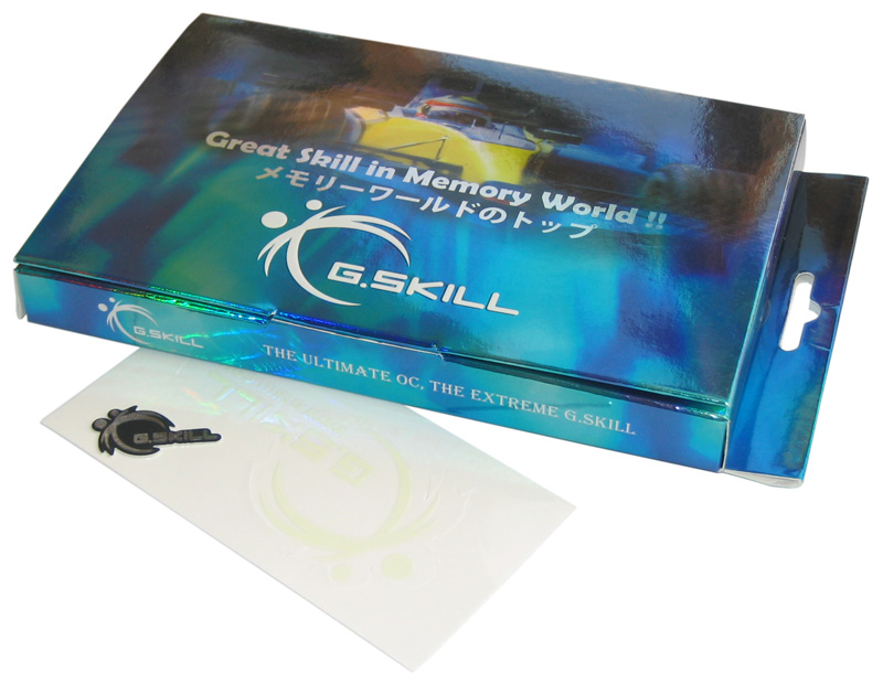 Case-Modding: G.Skill legt der stylischen Verpackung noch zwei Aufkleber bei.