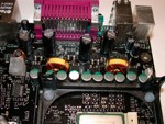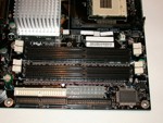 Als Spannungswandler kommt auf dem Boxed-Board ein 2-Phasenwandler zum Einsatz, um die Platine optimal mit Strom zu versorgen. Nebenbei sei erwähnt, dass der Poweranschluss an einer zwar eher ungewöhnlichen aber guten Position sitzt und nicht umständlich um den CPU Kühler geführt werden muss. Genau gleich verhält es sich mit den IDE- Anschlüssen und dem Floppy-Connector. Das Prädikat perfekte Lage würde hier am besten passen, da so eine optimale Erreichbarkeit gesichert ist...
