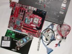 Trotzdem ist der Lieferumfang ausgezeichnet, nicht zuletzt weil Abit seine Ambitionen als Overclocking-Hersteller mit einem mitgelieferten OTES Speicherkühler nochmals untermauert. Der Lieferumfang in der Übersicht umfasst folgende Teile: