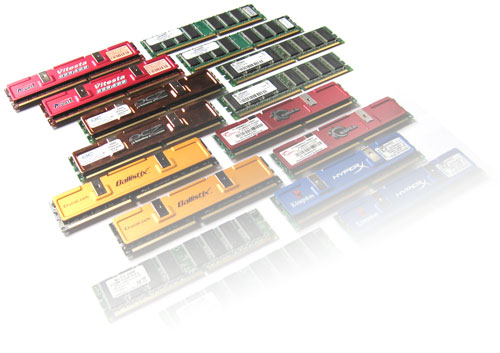 Grund genug für uns, ein letztes mal diverse DIMMs verschiedenster Hersteller, Preisklassen (und nachdem uns Super Talent kurz vor Redaktionsschluss ein 2 GB Kit per FedEX-Express aus San Jose geschickt hat, auch Kapazitäten) in unser Testlabor zu schicken. Im Wesentlichen handelt es sich bei den Probanden um handelsübliche PC3200 Module, aber auch einige Speichermodule mit höherer Datentransferrate wollen wir Ihnen auf den nächsten Seiten vorstellen. Ebenfalls klären wollen wir die Frage, ob und wann es sinnvoll ist, DIMMs zu kaufen, deren SDRAM-Speicherchips für Taktfrequenzen jenseits von 200 MHz ausgelegt sind.