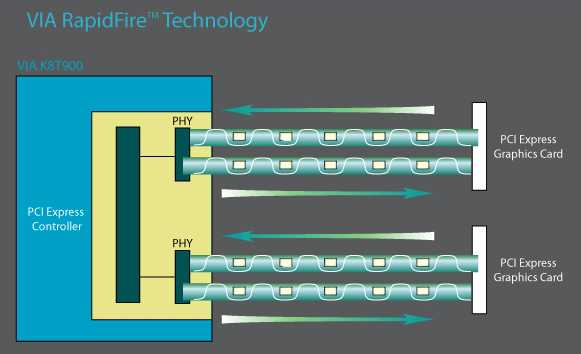 Neben den bereits bekannten Bezeichnungen VIA DriveStation, VIA Vinyl Audio, VIA Connectivity, VIA FlexExpress, VIA Hyper8 und den zahlreichen Features, gesellt sich nun ein neuer Markenname hinzu: VIA RapidFire Technology. RapidFire dient primär den beiden PCI Express x16 Steckplätzen bzw. deren Funktionalität. So soll durch diese neue Technologie die Signalqualität zwischen dem PCI Express Controller und den Grafikkarten gesteigert werden, gleichzeitig soll dabei die Latenz sinken. Geringere Leistungsaufnahme des Busses und höhere Geschwindigkeit bei der Datenübertragung sind laut VIA weitere Effekte der RapidFire Technology. Erste Praxsitests und speziell die Analyse der PCIe-Kanäle werden hier Klarheit schaffen.