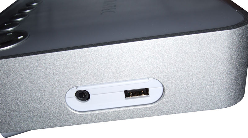 Die Installation des NOXON 2 bedarf im Wesentlichen nur dem Anschluss an eine HiFi-Anlage und der Eingabe des WEP/WPA Schlüssels für das Funknetzwerk. Anschließen lässt sich NOXON 2 wahlweise über einen Cinch-Anschluss oder einen digitalen TOS-Link Ausgang. Falls ein Kopfhörer zum Einsatz kommen soll, lässt sich dieser ebenfalls über einen seitlichen Kophörer Ausgang (Mikro-Klinke) betreiben. Da TerraTec aber kein Cinch-Kabel mitliefert, muss dies extra besorgt werden. Wieso an einem zum Betrieb absolut notwendigen Teil gespart wurde, bleibt unverständlich. Hat man sich das Cinch-Kabel oder TOS-Link aus dem Zubehörhandel gekauft, kann das muntere Anschließen endlich losgehen. Nach dem Verkabeln lässt sich das Gerät bereits zum Leben erwecken und der WEP/WPA Schlüssel (64 und 128 Bit) für das WiFi-Netze will über die mitgelieferte Infrarot-Fernbedienung eingegeben werden. Sind diese Dinge getan, so können zumindest schon Internetradios empfangen, oder Musikstücke von der USB-Schnittstelle gelesen werden.