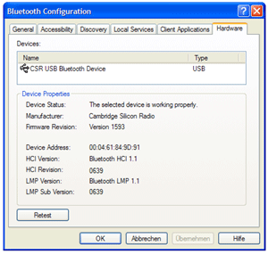 Hat man diese kleine Windows-Hürde gemeistert, steht einem ein komfortables Menü mit zahlreichen Konfigurationsmöglichkeiten und den umfassenden Bluetooth-Services zur Verfügung. Mit Hilfe der Quick Connect Funktion, welche sich ebenfalls bequem über den Tray aufrufen lässt, kann man all diese Services steuern und hat in Kürze und mit wenigen Handgriffen eine Verbindung zu einem Headset, Drucker oder beispielsweise einem anderen PC oder Notebook aufgebaut und kann Daten transferieren/synchronisieren. Für all diejenigen die der Materie noch nicht so ganz trauen, steht auch ein praktisches Setup Wizzard zur Verfügung. Einziger Nachteil der Software: Sie ist komplett auf Englisch.