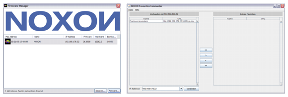 Im zweiten Schritt muss das Konfigurationsmenü des iRadio aufgerufen werden. Das geht auf zweierlei Art: Entweder klickt man in der Netzwerkumgebung das entsprechende UPnP-Symbol an oder man gibt die IP des NOXON direkt in den Browser ein. Beide Wege führen zum Ziel, und es erscheint ein Browserfenster, das über den Gerätestatus wie etwa die Betriebsbereitschaft oder die Stärke des WLAN-Signals informiert. Hier kann unter der Rubrik „Software-Update“ die entsprechende Firmware eingespielt werden. Diese Schritte sind selbsterklärend und verständlich gemacht, so dass wir hier nicht weiter darauf eingehen. Abschließend wollen wir uns auf der nächsten Seite das iRadio noch kurz unter praktischen Bedingungen ansehen.