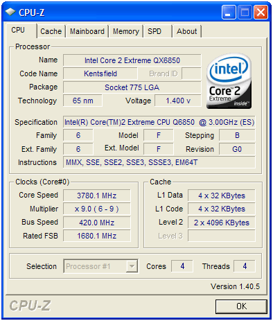 Beim Ermitteln der maximalen Frequenz haben wir sowohl auf den frei wählbaren Multiplikator (FID) als auch auf den Bustakt zurückgegriffen. Wir begannen wie gehabt mit sukzessiven Erhöhungen der Frequenzen bei einer maximalen Versorgungsspannung von 1,450 Volt, da wir unseren CPUs nicht mehr Spannung zumuten wollten. Letztlich haben wir ein sehr gutes Ergebnis von 3,78 GHz bei einem Bustakt von 420 MHz erreicht. Leistungsmäßig war dies gleichbedeutend mit rekordverdächtigen 2059 CB-Punkten (+27%). Aber die hohe VCore sorgte auch für eine enorme Steigerung der Leistungsaufnahme, die für das gesamte System (ohne Monitor) nun bei 366 Watt lag! Auch unser Zalman-Kühler hatte alle Hände voll zu tun und konnte die CPU bei 78° Celsius stabilisieren. Sicherlich kein Betriebsmodus für längere Zeiträume, auch wenn die Junction-Temperatur erst bei 100° Celsius liegt.