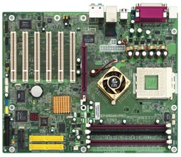 Prinzipiell gibt es natürlich für alle gängigen Sockel Motherboards wie Sand am Meer. Trotzdem wollen wir versuchen einzelne aus der Menge abzuheben und Ihnen hier genauer präsentieren. Beginnen wir mit dem EPoX EP-8RDA6+ Pro (Bild unten links), welches für AMDs Sockel A Prozessoren entwickelt wurde und auf Nvidias nForce 2 Ultra 400 Chipsatz basiert. Die Weiterentwicklung des EP-8RDA3+ Pro ist mit Gigabit-LAN, 6-Kanal Audio Codec mit Digitalausgängen, zwei Serial-ATA Controllern, FireWire und vielem mehr ausgestattet. Hinzu kommt noch der Silicon Image RAID Controller, welcher die Modi 0, 1 und 0+1 ermöglicht. All dies bekommt man bereits zu einem Preis von 90 Euro und hat somit eine solide Plattform für Athlon XP und Sempron CPUs.