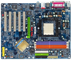 Wer nicht viel Geld für ein neues Motherboard ausgeben, aber trotzdem auf den Sockel 939 und sein Dual-Channel Interface setzen will, der wird vom Gigabyte K8NS-939 überwältigt sein. Auf Basis von Nvidias nForce 3 Ultra Chipsatz kann das Gigabyte Motherboard Serial-ATA RAID, Gigabit-LAN, 8-Kanal Sound und sogar noch Features wie nTune und die integrierte Nvidia Firewall bieten. All dies bekommt man bereits für etwa 75 Euro - sehr preiswert!