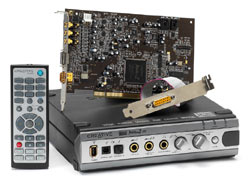 Auch Hersteller Creative unterstützt uns bei unserem diesjährigen Jubiläum und stellt uns gleich zwei Produkte zur Verfügung: Die Audigy 2 ZS Platinum Pro Soundkarte und das 7.1 Soundsystem Inspire T7700. Die Sound Blaster Audigy 2 ZS Platinum Pro ist die perfekte 7.1 Lösung für Musiker und Audio-Fans. Die Soundkarte unterstützt ASIO 2.0, SoundFont 2.1 sowie 24 Bit Advanced HD Audio mit einem Rauschabstand von 108 dB. Ferner können bis zu 7 Kanäle gleichzeitig mit 24 Bit/96 KHz aufgenommen werden. Musikern bietet die Sound Blaster Audigy 2 ZS Platinum Pro umfangreiche digitale und analoge Anschlussmöglichkeiten über das external I/O-Module. Mit EAX 4.0 Advanced HD, Dolby Digital EX und DTS-ES und der Integration der THX Konsole für die Kalibrierung der Lautsprecher über eine im Lieferumfang enthaltene Fernbedienung erzielt die Platinum Pro insgesamt überragende Ergebnisse bei der Wiedergabe in allen Bereichen.