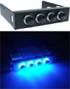 Kombinationen ist die Lüftersteuerung außerdem noch erhältlich: dunkelblau mit roten LEDs und silber mit