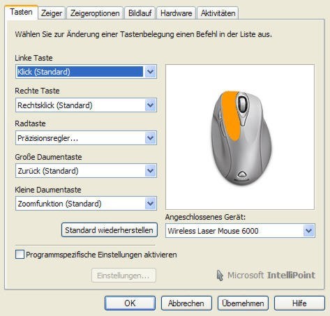 Startet man eine beliebige Office-Anwendung oder ein Bildbearbeitungsprogramm, kann die Maus ihren Stärken voll ausspielen: Ein komfortableres Arbeitsgerät dürfte man derzeit schwerlich bekommen. Jeder Klick sitzt und die Tatsache, dass das Rad keine Raststufen bietet, fällt hier angenehm auf, denn dadurch ist es möglich, wirklich punktgenau zu scrollen. Zudem kann die Radtaste z.B. mit der Funktion "Präzisionssteuerung" versehen werden. Damit lässt sich mit einem Klick die Mausbeschleunigung umschalten. Die Radtaste erfordert zur Bedienung allerdings einen höheren Kraftaufwand, als man das üblicherweise gewohnt ist. Das verwundert zunächst zwar, doch der Sinn dieser Maßnahme wird schnell klar.