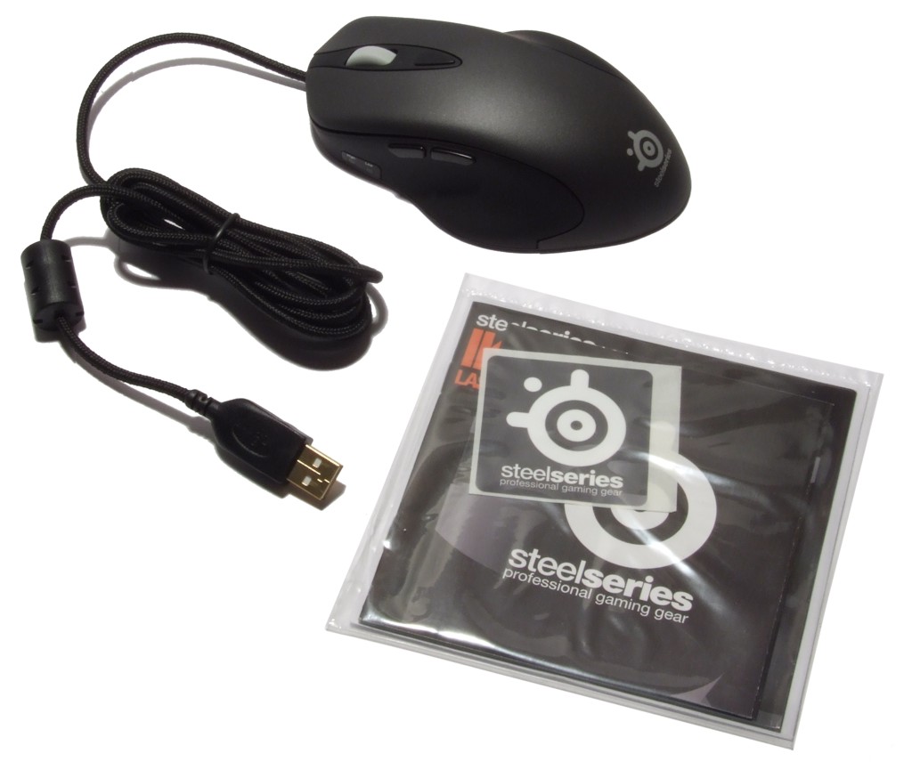 Der Lieferumfang der SteelSeries Ikari Laser reduziert sich auf das Wesentliche. So finden wir im Karton neben der Maus lediglich eine Treiber-CD, eine Kurzdokumentation sowie einen Aufkleber. Im Regelfall ist ein derartiger Lieferumfang allerdings auch ausreichend, denn viel mehr wird ohnehin nicht benötigt.