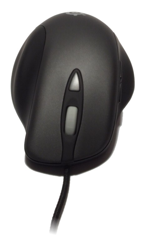 Rein baulich gesehen haben wir mit der Ikari Laser eine ergonomische Rechtshändermaus vor uns. Dabei ist offenbar die gleiche Schale wie bei der Ikari Optical verwendet worden, denn Bauform und Ergonomie decken sich. Die Formgebung nähert sich der Microsoft Sidewinder an, so dass wir auf der linken Seite der Maus eine Ablage für den Daumen und auf der rechten Seite eine Ausformung für Ring- und kleinen Finger finden. Die seitlichen Ablageflächen für die Finger sind mit einer gummiartigen Beschichtung versehen, so dass sich die Maus auch mit feuchten Fingern gut greift. Die beiden Haupttasten sind wie mittlerweile üblich nahtlos in die Oberschale integriert. Zwischen ihnen sitzt ein gut erreichbares Rad, das mit fein definierten, aber dennoch gut rastenden Stufen versehen ist. Zudem fungiert es wie gewohnt als dritte Taste. Hinter dem Rad befindet sich die Taste zur Auflösungsverstellung, mit der zwischen zwei Stufen umgeschaltet werden kann und die ebenfalls leicht erreichbar ist. Auf der linken Seite finden sich noch zwei Daumentasten, die sich beispielsweise mit Makros belegen lassen oder denen in Spielen Keyboardtasten zugewiesen werden können. Sie sind so positioniert, dass sie ebenfalls gut erreichbar sind, auch wenn der Nutzen von zwei Daumentasten zuweilen fraglich ist. Vorne links an der Maus finden wir darüber hinaus eine LED-Anzeige, die über die gewählte cpi-Stufe Auskunft gibt. Allerdings gibt es hier nur die Anzeigemodi "high" und "low". Die Oberschale selbst ist im Gegensatz zur Ikari Optical nicht mit einem grauen Hochglanzlack überzogen, sondern trägt eine gummiähnliche, matte Beschichtung, die das Handling gegenüber der Ikari Optical deutlich verbessert. Insgesamt folgt die Ikari Laser in ihrer Grundform einer Rechtskrümmung und ist ergonomisch durchaus gelungen. Nach einer kurzen Eingewöhnungszeit bietet sie einen recht hohen Komfort, wie wir ihn etwa von Microsoft- oder Logitech-Pendants kennen.