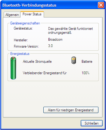 Die üblichen Features: Neben der Signalstärke und dem Status, kann man auch den Akkuzustand überprüfen.
