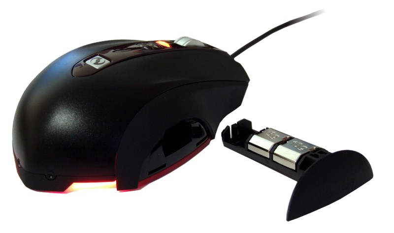 Abschließend wollen wir uns noch das Gewichtsmagazin ansehen. Es ist auf der rechten Seite der Maus angeordnet und kann durch einen Druck auf die Unterseite des Mauskörpers entriegelt werden. Da das Magazin nicht über eine Feder oder ähnliches verfügt, muss man die Maus leicht zur Seite neigen, wenn man es herausnehmen möchte. Insgesamt lässt sich die SideWinder mit bis zu 30 Gramm zusätzlich bestücken. Das funktioniert sehr gut, weil alles passgenau gefertigt ist. Mit welchem Gewichtssetup man am Besten zu Recht kommt, muss man allerdings ausprobieren, denn uns gefiel die SideWinder ohne Gewichte am Besten. Das ist aber eine Frage des Geschmacks und der Gewohnheit. Nach soviel theoretischen Betrachtungen kommen wir nun zur Funktion der SideWinder.