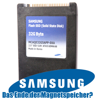 Auch wenn sich NAND-Flash-Bausteine bei portablen Geräten wie Apples iPod längst durchgesetzt haben und auch Handyhersteller vermehrt auf Flash zurückgreifen - das Angebot an reinen Flash-Festplatten, den sogennannten Solid State Disks (SSD), ist für den kommerziellen Einsatz in Desktop-Systemen und Notebooks derzeit rar. Dies ligt mitunter an den (noch immer) hohen Herstellungskosten im Vergleich zu konventionellen Festplatten. Samsung hat als einer der ersten Hersteller solche komplett auf Flash basierende Laufwerke vorgestellt und treibt die Entwicklung derzeit maßgeblich voran. Erst vor kurzem präsentierte man eine 32 GB SSD mit PATA-Anschluss und 2,5-Zoll-Formfaktor, die wir Ihnen nun in einem kurzen Review genauer vorstellen werden.