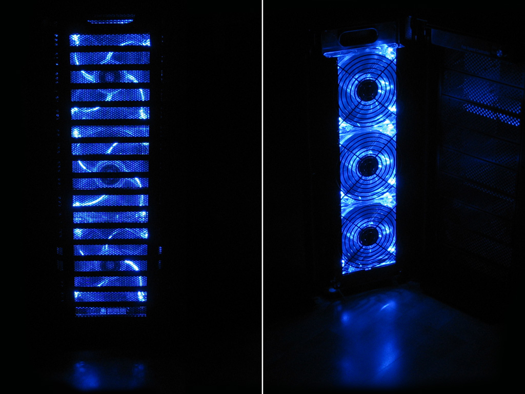 Wer ein High-End Gehäuse von Spezialist Lian Li kauft, der hat gewisse Erwartungen an das erworbene Produkt. Dies betrifft unter anderem allgemein die Qualität des Gehäuses und speziell die Verarbeitung der verwendeten Materialien, was auch im Falle des Lian Li PC-P60 Armorsuit als souverän zu bezeichnen ist. Zwar leistet man sich beim Festplattenkäfig kleinere Unsauberheiten bei der Verarbeitung (etwas scharfkantig und ein klein wenig wackelig in der Konstruktion), doch weiß das übrige Gehäuse durchaus zu überzeugen: Kanten sind entweder sauber entgradet oder entsprechend umgebogen und bilden eine sauberen Abschluss. Erstklassig ist zudem die Stabilität des Armorsuit, das sich in keinster Weise verdrehen oder verbiegen lässt und damit auch aktuellen Komponenten wie High-End Grafikkarten mit schweren Dual-Slot-Kühlungen stabilen Halt gibt. Dies gilt auch für die Fronttür, die fast vollständig aus Aluminium gefertigt ist und bei der man sich keine Sorgen machen muss, dass sie beim ersten "unsanften" Zuschlagen aus der Verankerung bricht. Mit knapp 8 kg Netto-Gewicht ist das Armorsuit dank der Aluminium-Leichtbauweise zudem auch kein Hindernis beim Transport zu einer LAN-Party.