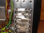 Auf den unten folgenden Bildern erkennt man, dass das Aspire-Gehäuse über ausreichend Platz für Erweiterungen in Form von Laufwerken verfügt. Insgesamt 12 Laufwerke (5,25 und 3,5 Zoll) lassen sich im X-Superalien problemlos unterbringen. Die externen Schächte sind dabei wiefolgt aufgeteilt: 5x 5,25 und 2x 3,5 Zoll. Zusätzlich lassen sich im Gehäuse noch 5 3,5 Zoll Geräte befestigen. Somit eignet sich das Gehäuse bestens für den Einsatz als Server/Workstation, da vor allem viele Festplatten darin Platz finden können. Sehr vorteilhaft sind dabei auch die beiden 80 mm Lüfter vorne (vorinstalliert), welche thermischen Problemen mit HDDs entgegenwirken und somit für mehr Stabilität sorgen können. Eine gelungene Ausstattung mit sehr guter Verarbeitung.