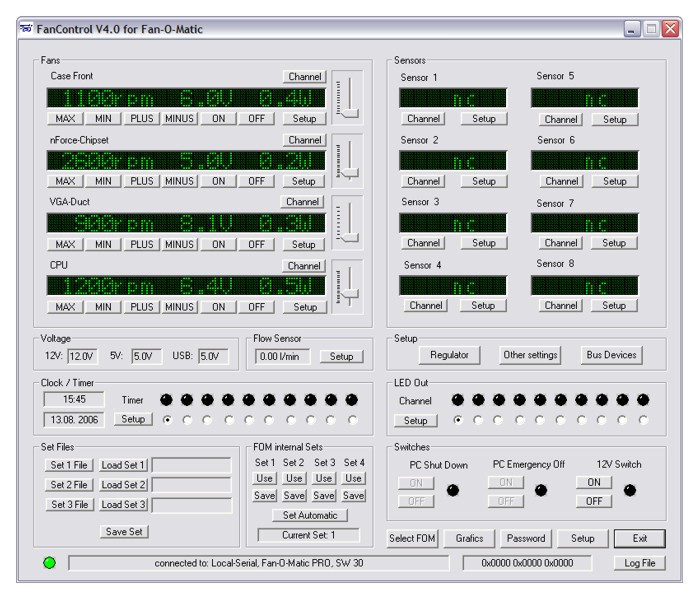 Genau bei dieser Überlegung setzt unser Testaufbau an: Wir haben sämtliche Gehäuselüfter sowie Chipsatz- und CPU-Lüfter an eine Innovatek Fan-o-Matic Pro-Lüftersteuerung gehängt, um die Drehzahlen und damit den Geräuschpegel kontrollieren zu können. Zusätzlich bietet die Fan-o-Matic die Möglichkeit, einen oder alle Lüfter gezielt abzuschalten, wodurch sich Geräuschquellen sehr gut lokalisieren lassen. Das Ziel der Bemühungen war, sämtliche Lüfter auf möglichst niedrigen Drehzahlen laufen zu lassen, denn unser Testsystem ist kein reiner Spielerechner und somit ist auch die Lautstärke relevant. Ohnehin geht der Anspruch vieler Nutzer in genau diese Richtung. Wir haben die Lüfter soweit wie möglich gedrosselt und anschließend die Temperaturen nach einer gewissen Aufwärmzeit des Systems gemessen. Die Ergebnisse der Messungen finden Sie auf der folgenden Seite.