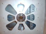 Das Design erinnert an das von uns schon getestete GlobalWin GAT001 (Review), welches fast die selbe Front hat, zumindest bei den Laufwerksschächten. Bei den Farben war man eher zurückhaltend und beschränkt sich auf Silber-Grau, Blau und Chrom. Das Seitenfenster bzw. Window in der linken Seite hat eine eher ungewöhnliche Form. Nicht wie bei den meisten Windows ein einfaches Fenster, sondern wie eine Blume in deren Mitte ein durchsichtiger Gehäuselüfter ist, der mit einem goldenen Lüftergitter geschützt wird. An der oberen Gehäuse Kante sind schräge Lüftungsschlitze angebracht, wodurch die heiße Luft problemlos nach außen dringen kann...