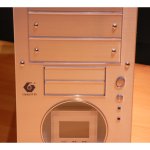 Wie bereits in der Tabelle der technischen Daten zu sehen, bietet auch das GlobalWin GAT001 Gehäuse Platz für bis zu 10 Laufwerke und das trotz der kompakten Abmessungen. Bis zu vier externen 5,25" Laufwerken, wie zum Beispiel: CD-ROM, Brenner oder DVD-Laufwerke können installiert werden. Des Weiteren können bis zu sechs weitere 3,5" Geräte installiert werden. Zwei externe und vier interne. Hier können zum Beispiel Festplatten und Disketten-Laufwerke eingebaut werden. Somit könnte das GlobalWin GAT001 auch als "kleiner" Server-Tower eingesetzt werden. Dies ist jedoch nicht seine Hauptkonzeption und schon gar nicht seine "Paradedisziplin". "Warum?", darauf werden wir später noch eingehen...