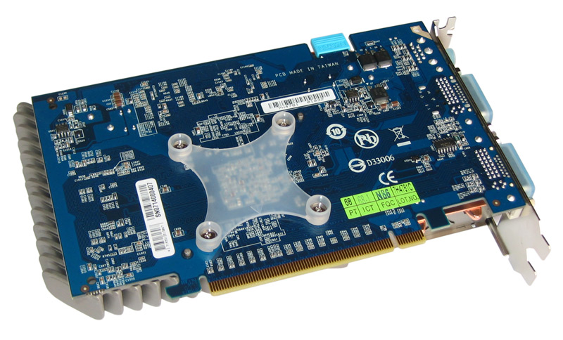 Wie fast alle heute im Test befindlichen Kandidaten hält sich auch die GV-NX86S256H an die Nvidia-Referenzwerte für die 80 nm G84(-400)-Grafikchips. So verbuchen wir einen Chiptakt von 675 MHz; die 32 Stream-Prozessoren der Unified-Shader-Architektur setzen auf 1,45 GHz. Beim verbauten GDDR3-Speicher bedient sich Gigabyte aus dem Portfolio von Samsung (K4J52324QE-BJ1A): 1,9 Volt, 512 Mbit, 16Mx32, 1,0 ns. Mit den 1,0 ns Latenz werden genau die geforderten 1,0 GHz Speichertakt der 8600 GTS Referenz möglich. Ob die über ein 128 Bit Speicherinterface angebundenen BGA-Chips noch weitere MHz aus sich herauskitzeln liesen, berichten wir später. Für den Anschluss von Monitoren stehen zwei Dual-Link-DVI-Ports für digitale und analoge Signale und ein TV-Ausgang bereit.