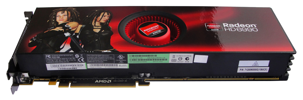 Wie bereits im Vorwort erwähnt, handelt es sich bei den verwendeten GPUs auf der Radeon HD 6990 um keine Neuentwicklung. Stattdessen setzt AMD auf zwei Cayman-Grafikchips mit veränderten Frequenzen, gepaart mit insgesamt 4096 MB GDDR5-Speicher (jeweils 2048 MB je Chip, angebunden über ein 256 Bit Interface). Der Speicher wird mit effektiv 2,5 GHz betrieben und erreicht somit einen Durchsatz von 160 GB/s, was dem Wert einer Radeon HD 6950 entspricht. Für die flotte Berechnung komplexer Grafiken stehen der HD 6990 insgesamt 768 Shader-Einheiten (4-dimensional, 384 pro GPU) zur Verfügung. Durch die Betriebsfrequenz von 830 MHz ergibt sich eine Rechenleistung von 2550 GFLOPs (IEEE754-SP) pro Chip bzw. 5100 GFLOPS für die gesamte Karte.