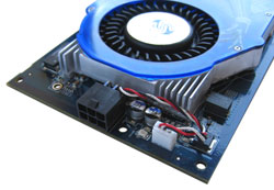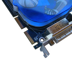 Seitens des Speichers setzt Sapphire wie gewohnt auf Partner Samsung, welcher passende GDDR3-Chips in seinem Repertoir bereit hält. Um genau zu sein, handelt es sich dabei um Chips der K4J55323QG-Serie (136 Ball FBGA) und das Modell BC12, welches für Frequenzen von bis zu 800 MHz spezifiziert wurde. Da ATi einen Takt von 700 MHz für die Speicher vorsieht, scheint hier noch ausreichend Luft für ein kleines Overclocking zu sein - mehr dazu auf der nächsten Seite. Durch die 256 Bit breite Anbindung an die RV570-GPU entsteht eine effektive Datenrate von bis zu 44,8 Gigabyte pro Sekunde. Alle verbauten Speicherchips werden durch den großflächigen Kühlkörper mitgekühlt.