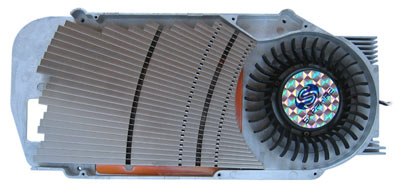 Sowohl die Kühlerreferenz von ATi, als auch die Umsetzung von Sapphire (bis auf die farbliche Gestaltung identisch) suchen das Heil eher in der Breite der Konstruktion als in der Höhe. Daraus resultiert ein Single-Slot Design, welches keinen weiteren Slot belegt. Der Kühler selbst arbeitet im Idle relativ ruhig, ist aber dennoch wahrnehmbar. In Anbetracht dessen, dass die Karte ohne Last gerade einmal handwarm wird, scheint uns die Drehzahl hier deutlich zu hoch gewählt. Ob man hier eventuell durch ein neues BIOS nachbessern wird, können wir zum aktuellen Zeitpunkt nicht sagen. Unter Belastung wird die Karte schon etwas lauter und arbeitet deutlich wahrnehmbar, was unserer Meinung nach aber dennoch nicht als störend bezeichnet werden kann. Genauere Informationen zu den resultierenden Temperaturen finden Sie auf Seite 15 des Artikels.